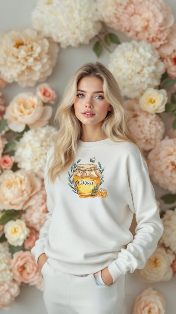 Haftowana bluza z motywem słoika miodu . To propozycja dla prawdziwych słodziaków. Nowoczesna bluza, której nie znajdziesz w żadnym sklepie. Wyróżnij się na tle innych i ciesz się trwałością haftu przez długie lata.